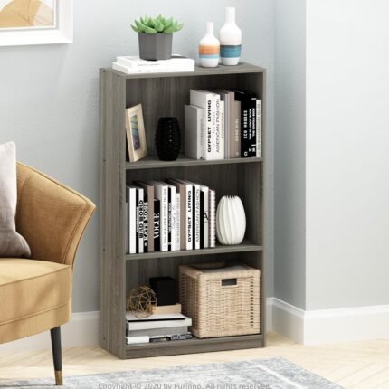 Basic 3-Tier Bookcase Storage Shelves, French Oak Grey