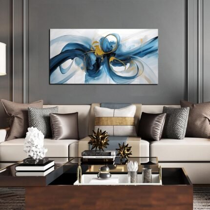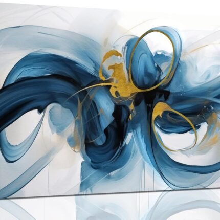 Large Wall Art Blue Abstract Canvas Wall Art Pictures for Living Room Office Wall Decor Decorative Canvas Painting Modern Framed Wall Art Artwork for Wall Print Ready to Hang Size 20×40 Inch