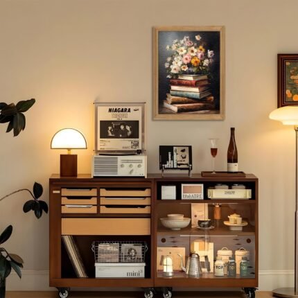 Framed Vintage Floral Wall Art – 3D Textured Flowers Books Sandstone Hand Drawn Art Oil Painting – Minimalist Botanical Wall Decor for Bedroom Living Room Office Decor 12X16in