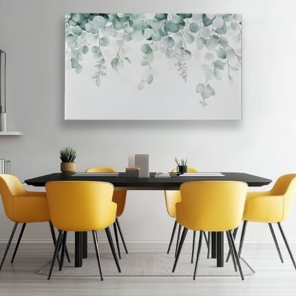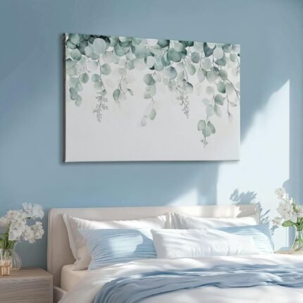 Frameless Canvas Decorative Painting Watercolor Plant Eucalyptus Leaf, Minimalism Wall Decor Art Pictures for Bedroom Office Home Decoration Gifts, 47 x 24 Inches Unframed