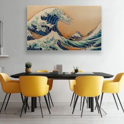 Frameless Canvas Decorative Painting Watercolor Waves, Japanese Style Wall Decor Art Pictures for Bedroom Office Home Decoration Gifts, 63 x 32 Inches Unframed