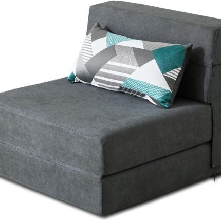 Folding Sofa Bed Single Size with Pillow Memory Foam Convertible Sleeper Chair Floor Couch Futon Lazy for Living Room/Home Office/Guest Beds/Apartment/Upstairs Loft,Dark Gray
