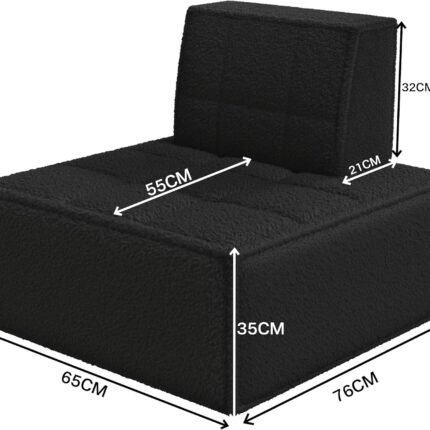 Modular Sherpa Sofa Chair, Cozy Floor Lounge Seating, No Armrests, Small Sofa for Small Spaces, Reading Nook, or Apartment Living, Single, Black