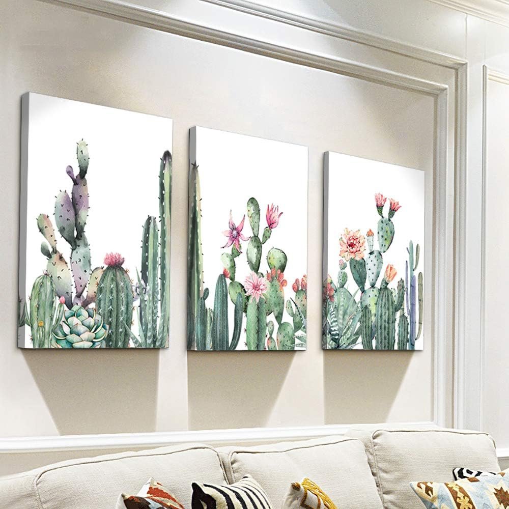Canvas Wall Art For Living Room Family Wall Decor For Bedroom Kitchen Wall Art Pictures Artwork Prints Green Succulent Cactus Wall Painting Modern Framed Bathroom Home Decorations 12″ X 16″3 Piece