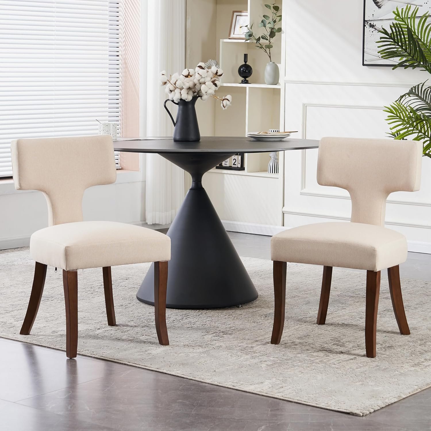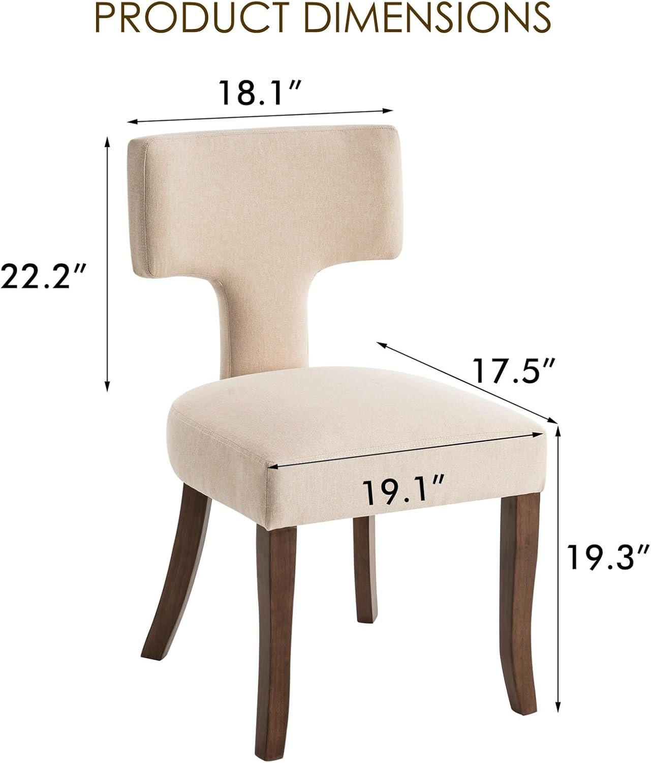 Dining Chairs Set of 2, Mid Century Modern Kitchen Chairs, Linen Fabric Side Chair with Curved Backrest for Living Room Bedroom,Beige