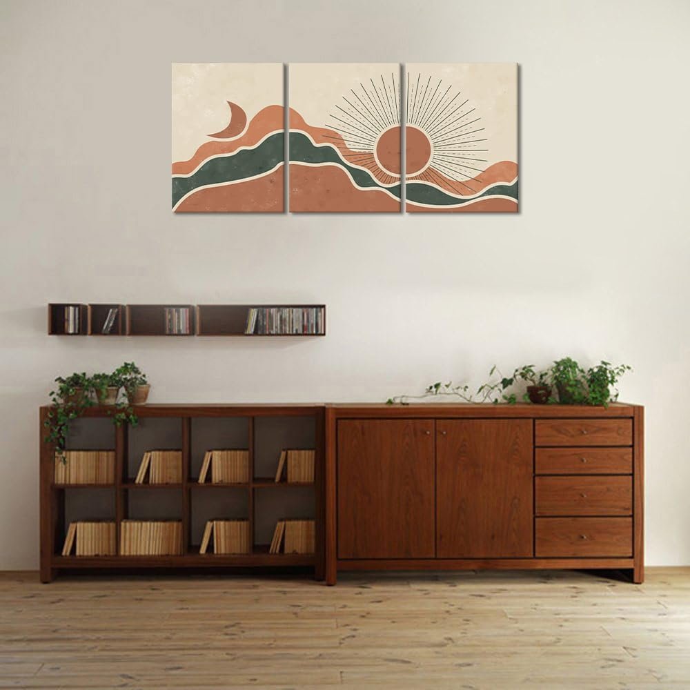 Orange Boho Wall Art Set of 3 Abstract Mountains and Rivers Framed Canvas Wall Decor Minimalist Posters Prints for Bedroom Living Room Office Wall Decor Ready to Hang – 12x16inchx3pcs