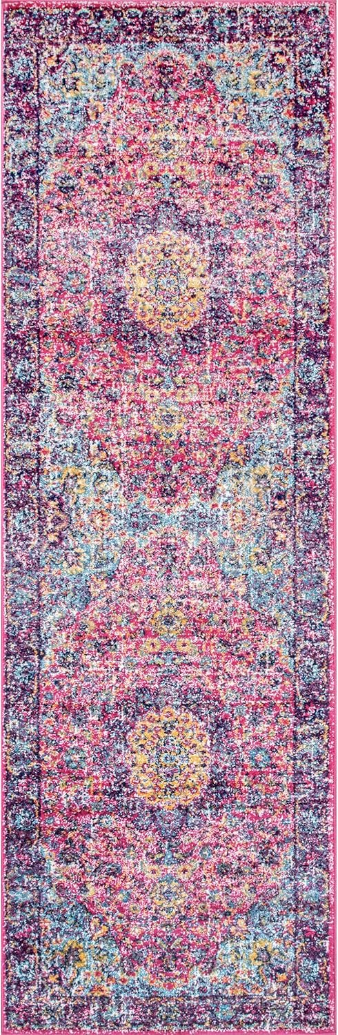 Paisley Vintage Persian Area Rug, 2′ x 6′, Verona Fuchsia