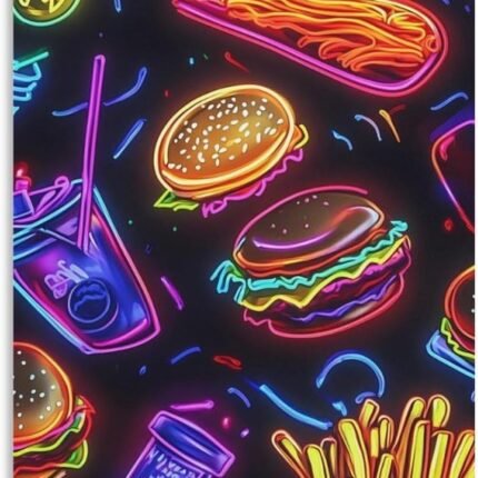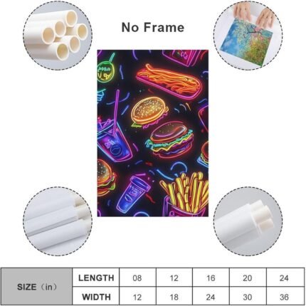 Neon Hamburger French Fries Canvas Art Decorative Paintings Wall Decor Picture for Bedroom Living Room Artwork Unframe-style 24x36inch(60x90cm)
