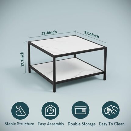 About this item 【2 Tier Storage】 Measuring 27.6 * 27.6 * 17.7 inches, the square coffee table with storage shelves