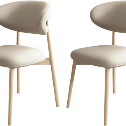 White Dining Chairs, Kitchen Dining Room Chairs Curved Backrest Upholstered Mid Century Modern Dining Chairs (Beige, 2pcs)