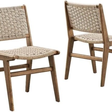 Woven Rope Wood Dining Side Chair in Walnut Natural