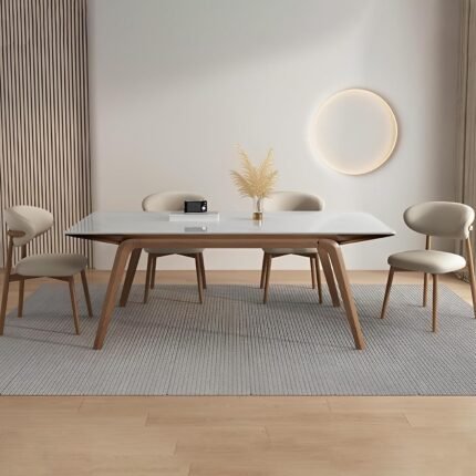 Wood & Faux Marble 63Inch Rectangular Dining Table with White Faux Marble Top and Angled Legs Dining Room & Home Kitchen White