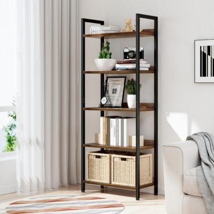 Bookshelf, 5 Tier Bookshelves, Home Office Bookcase Shelf Storage Organizer, Free Standing Storage Shelving Unit for Bedroom, Living Room and Home Office, Vintage